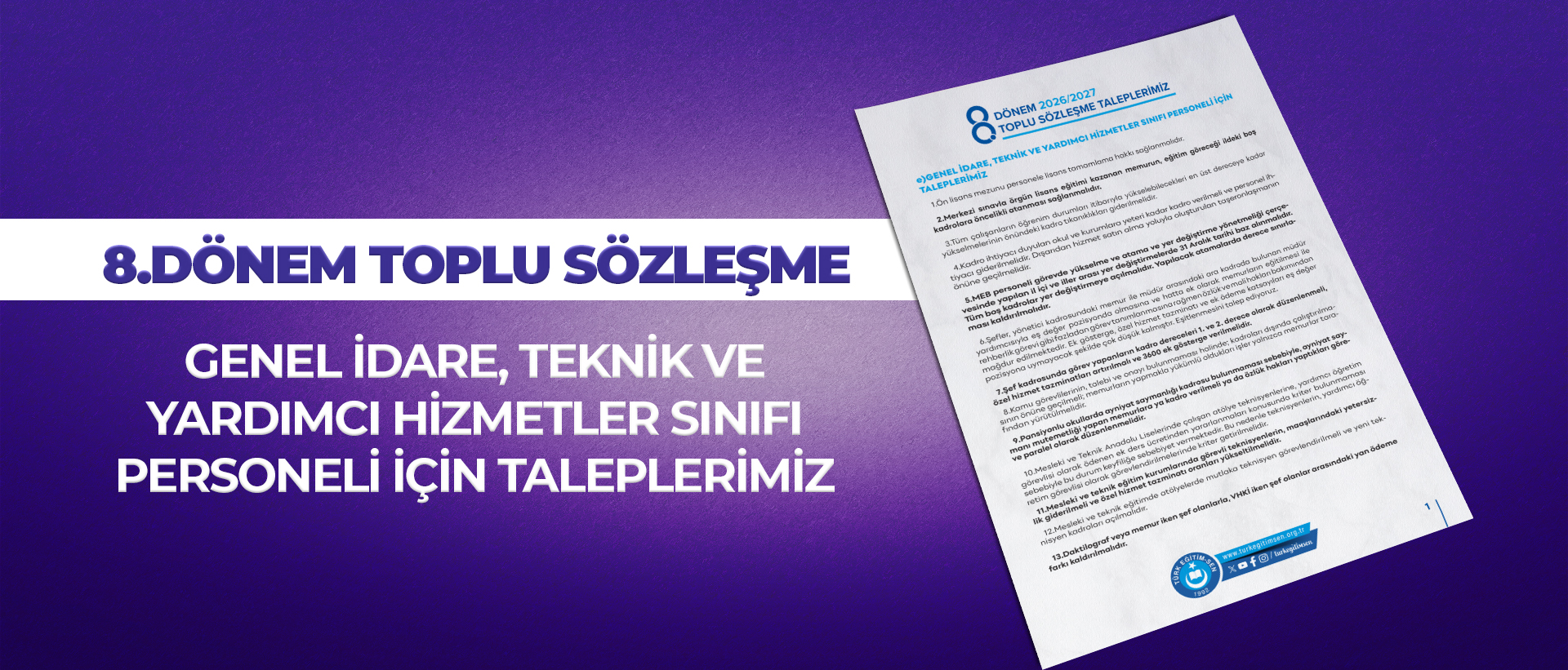 8. Dönem Toplu Sözleşme Görüşmelerinde en büyük temennimiz sorunların daha fazla birikmeden çözüme kavuşturulmasıdır. Kamu çalışanlarının haklarının korunması bizim asli görevlerimizdendir. Bu uğurda değil elimizi, gövdemizi de taşın altına koymaya hazır olduğumuzun bilinmesini istiyoruz.