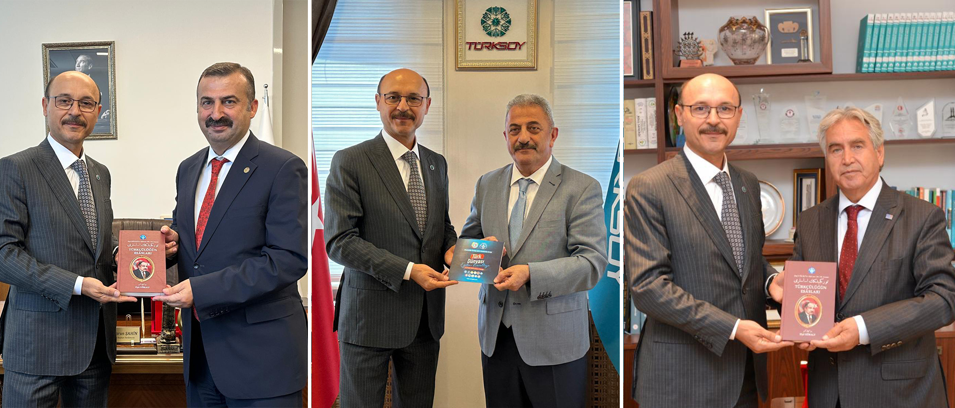 Genel Başkanımız Talip Geylan, 12.08.2025 tarihinde Türk Dil Kurumu Başkan Yardımcısı Doç. Dr. Harun Şahin, TÜRKSOY Genel Sekreter Yardımcısı Sayit Yusuf ve UNESCO Türkiye Milli Komisyonu Başkanı Prof. Dr. Öcal Oğuz’u makamlarında ziyaret etti. Ziyaretlere, Genel Başkan Yardımcımız Cengiz Kocakaplan ve Ar-Ge Koordinatörümüz Prof. Dr. Yılmaz Yeşil de eşlik etti.
