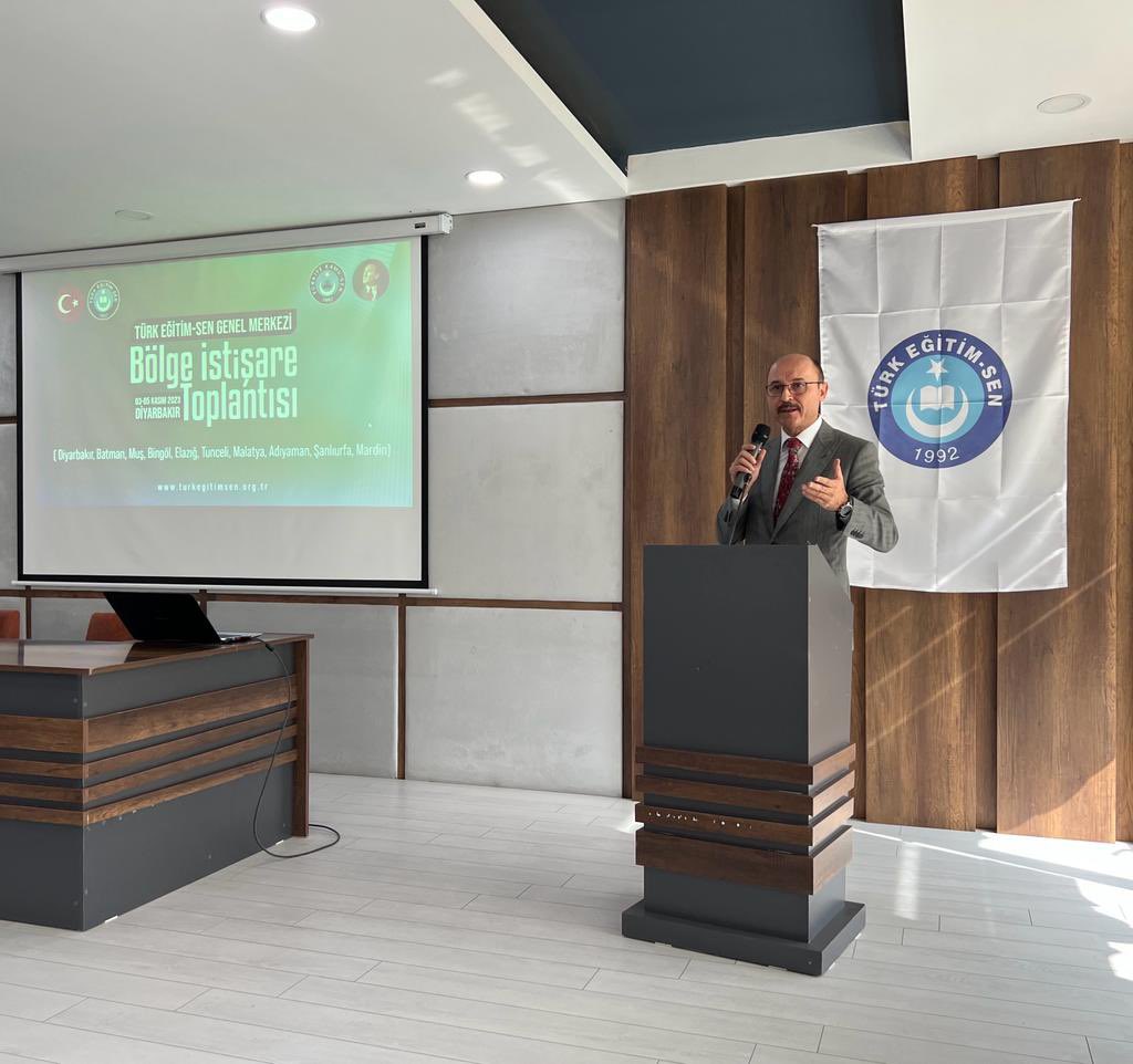 Eğitimin ve eğitim çalışanlarının gündemi, sendikal çalışmalara ilişkin değerlendirmelerin yapıldığı toplantıda konuşan Genel Başkanımız Talip Geylan; “Güneydoğu Anadolu Bölge Toplantımızda; Diyarbakır, Bingöl, Muş, Batman, Tunceli, Elazığ, Malatya, Mardin, Adıyaman ve Şanlıurfa teşkilat yöneticilerimizle bir araya geldik. Şube yönetim kurulu üyelerimiz, ilçe ve üniversite temsilcilerimizle hasbihal ettik. Türk Eğitim Sen bayrağını şeref ve başarıyla taşıyan her bir yol arkadaşımla gurur duyuyorum. Var olsunlar…” dedi.