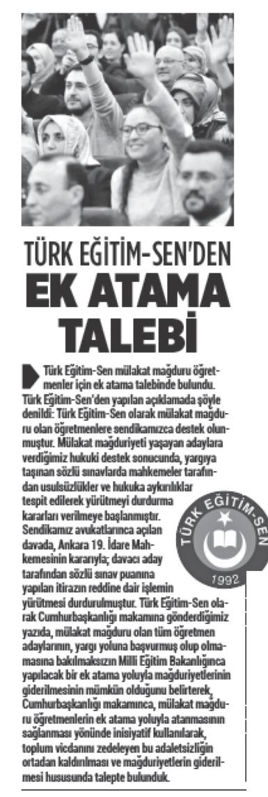 Türk Eğitim Sen’den Ek Atama Talebi – Türkgün